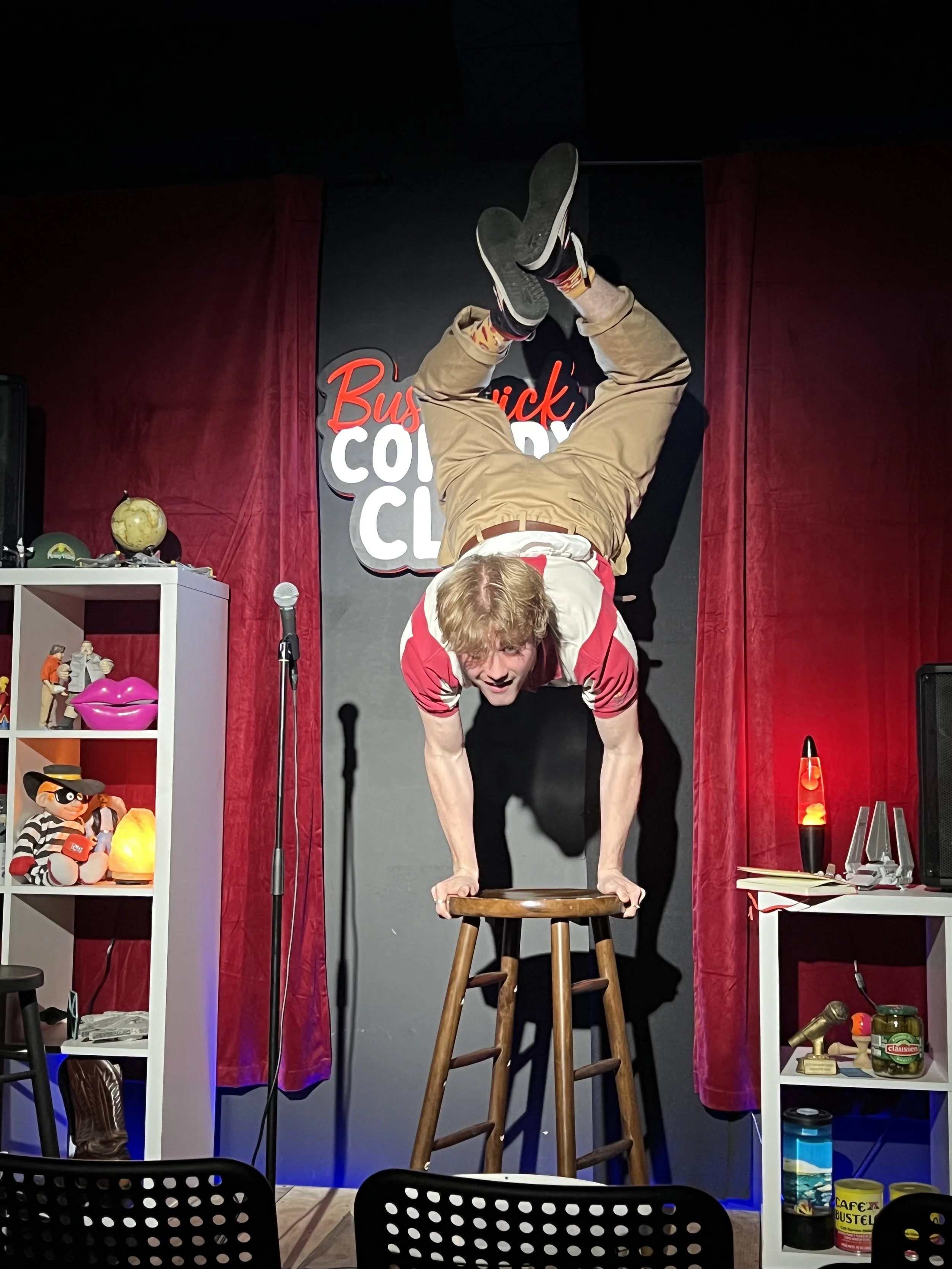 Miles has taken and created every opportunity to perform with Gusto. He’s done Ballet and Life Modeling, been the frontman for Metal Bands, and been producing/Hosting variety shows since 2021. His background in Improv, Clown, and Parkour can be dropped just about anywhere, and I’m sure you and the Audience will be glad for his Company.